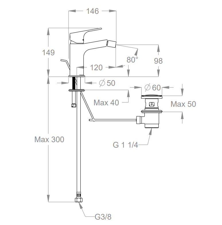| Miscelatore Bidet Handy 52 | 52.2102.1 | H 150 mm – Interasse 120 mm | Con scarico e salterello |