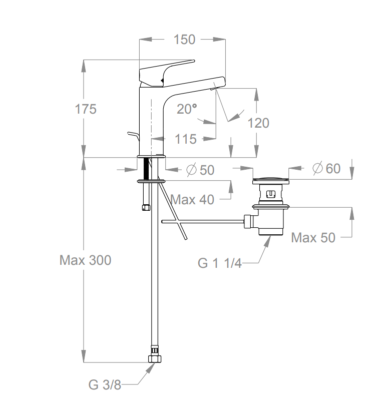 | Miscelatore Lavabo Handy 52 | 52.1120.1 | H 175 mm – Interasse 115 mm | Con scarico e salterello |